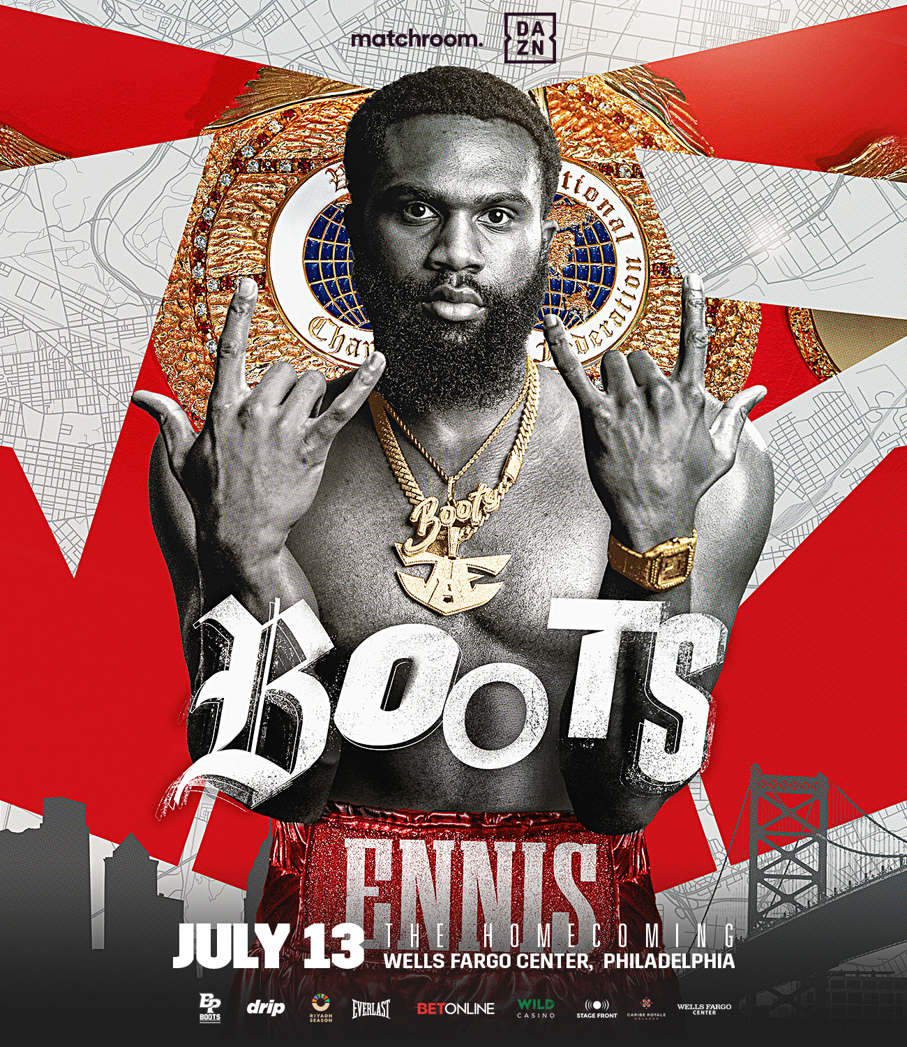 Key artwork, animations and illustrations for Jaron 'Boots' Ennis Homecoming fight against David 'Ava' Avanesyan at Wells Fargo Center, Philadelphia.